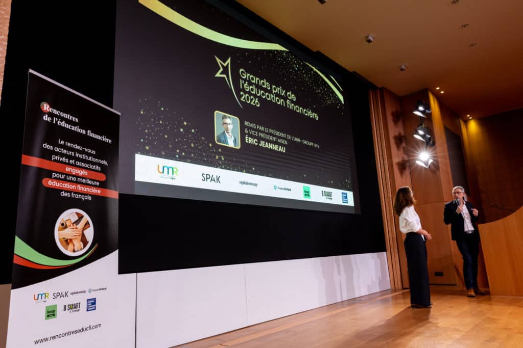 Pour terminer, la matinée s’est conclue par la remise des Grands Prix de l’éducation financière par Eric Jeanneau, Vice-président Mgen et Président UMR et Anne-Claire Bennevault de SPAK pour célébrer les initiatives et les acteurs engagés qui améliorent la culture financière des Français.